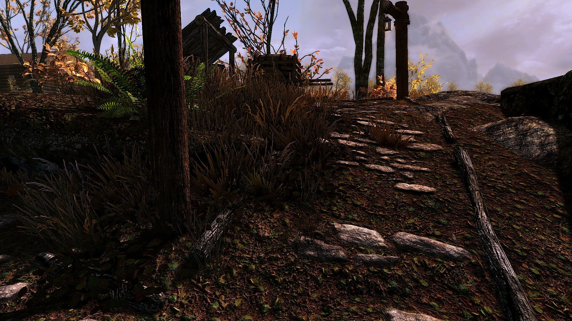 Продолжаю на свой вкус добавлять графику. Мониторинг системы в игре показывает, что нагрузка не увеличилась. FPS так же стабилен. И как обычно, никаких ENB.  Можно при желании в Skyrim ini, в разделе