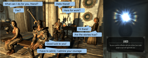 С помощью двух опций диалогов «Комплемент» и «Оскорбление» вы сможете повышать или ухудшать отношения с НПС.