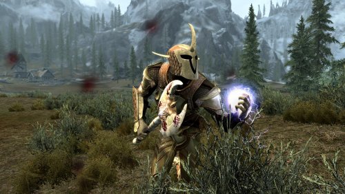 - знает несколько огненных заклинаний и имеет улучшенный перк магического щита. Чем вышке ее уровень. тем он мощнее. Но если одета одета в броню, то эффект магического щита исчезает