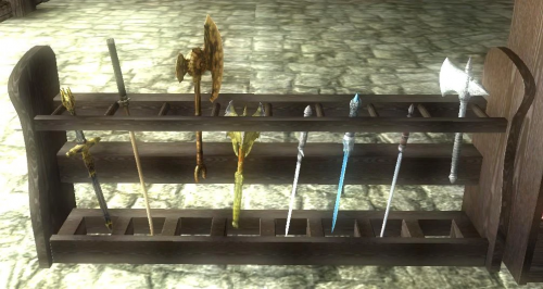 - вся коллекция лучших оружейных стеллажей Лота. Она включает в себя стойку для лука, средняя оружейная стойка, высокая оружейная стойка, полочная стойка, стойка для щита, стойка для посоха, ступенчатая стойка для оружия, камень для меча и оружейный стол. Их можно использовать без каких-либо дополнительных модов размещения, таких как Decorator. Ассистент. Просто берете оружие и вставляете его в слот в стойке. Оружие встанет на место. Ступенчатая стойка для оружия имеет невидимые стены спереди и сзади каждой полки, чтобы оружие не скатилось.
