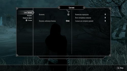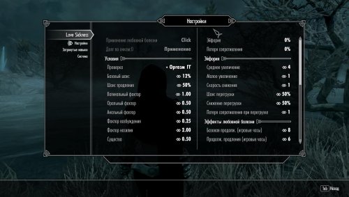 Все дебаффы и эффекты настраиваются. Вы получаете только те дебаффы и риски, которые вы выберете. Можно настроить любовную болезнь так, чтобы она вообзще ни на что не влияет. Настройки можно менять и применять, даже если у вашего персонажа любовная болезнь. Если эффекты кажутся слишком простыми или слишком резкими, просто измените их — немедленно.