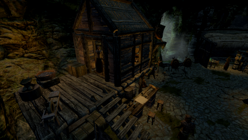 - Охотничий домик: полностью переделанный внешний вид, остается в той же внешней ячейке, но здание теперь соответствует стилю владения и основному описанию мода. Он по-прежнему может функционировать как временный дом. Подвал был уменьшен, чтобы соответствовать дому выше, но маркеры не менялись. Эта внутренняя ячейка не имеет навигационной сетки, чтобы предотвратить вход последователей. Вход в подвал представляет собой дверь «минимального использования», что также не позволяет NPC использовать ее.