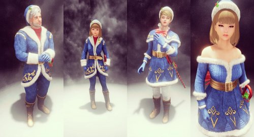 Добавляет праздничный набор брони и оружие для женского и мужского персонажа в синем и красном цвете