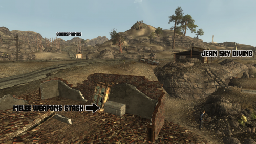 Металлический сундук с оружием можнго найти в разрушенного здании около Парашютной школы Джин