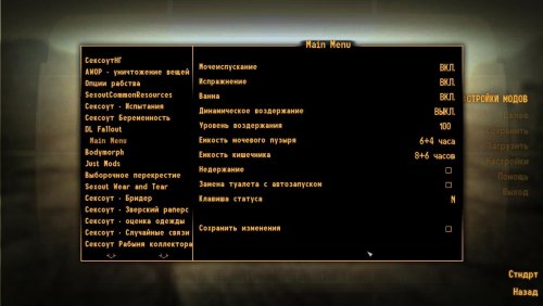 - можно ключить ночное недержание мочи, от этого будет зависеть, проснется ли ваш персонаж, когда ему нужно в туалет, или он намочит постель. Однако будьте осторожны: даже если ваш уровень воздержания равен сотне, все равно есть вероятность, что вы намочитесь в постель, если этот параметр включен.