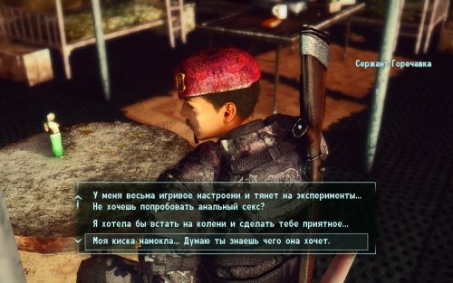 Небольшее уточнение. Квест начинает работать только после завершения обучения с Санни. Тоесть когда она вас выводит за салун пострелять по бутылкам. Но начнется все с Санни когда та вернется в салун после вашего обучения. Нужно поговорить с нею и попытаться соблазнить. (можно начать квест без Санни, через пипбой, там есть соответствующая опция).