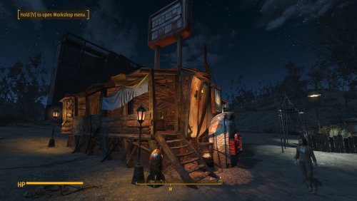 - 13 деревянных хижин, 17 металлических хижин, 6 открытых хижин торговцев, 7 крытых хижин торговцев, 8 крафт станций, 6 спальных мест, деревянная платформа