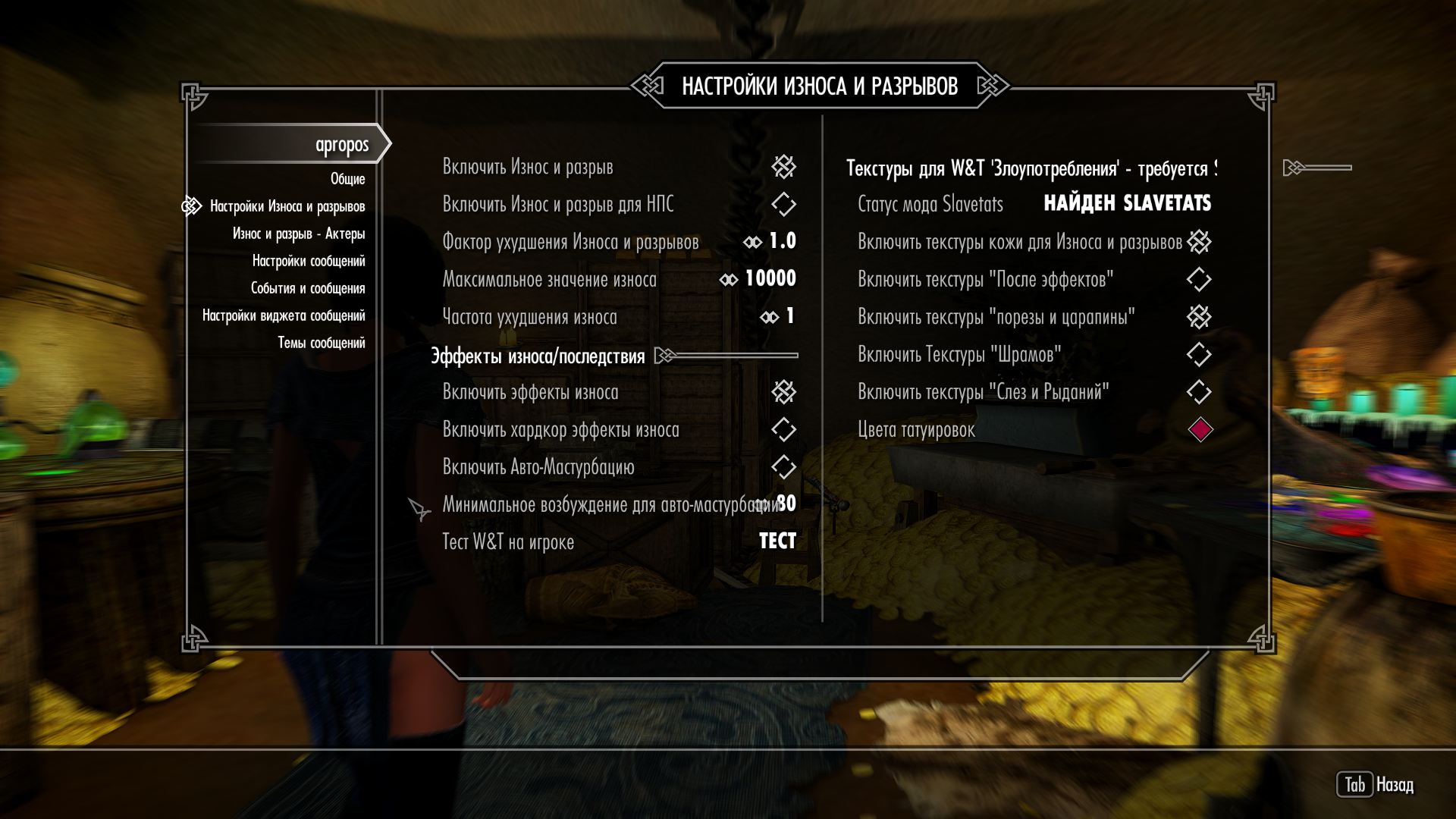 В прошлой сборке был дебаф за возбужение, а тут его нет. Где включить, подскажите?