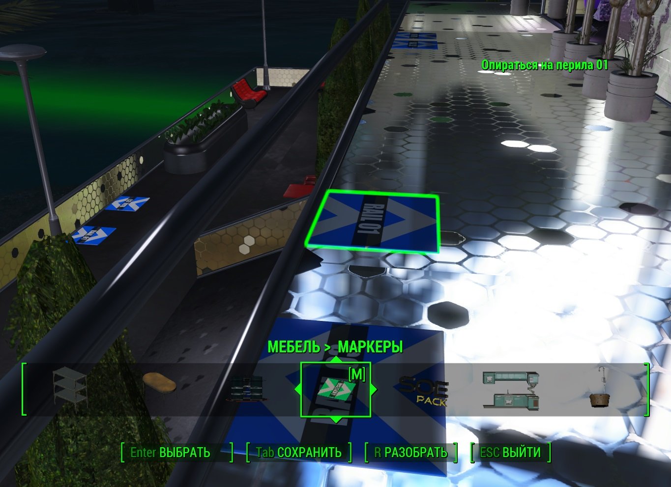 Легче поставить маркеры где хочешь чем искать уже готовые))Например вот эти https://gamer-mods.ru/load/fallout_4/animacii/imp_invisible_marker/146-1-0-6492.Я ставлю старую версию 2.0-она более стабильна