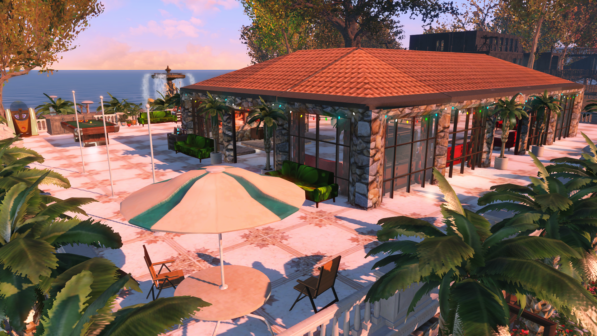Сначала квест Беспокойные воды, потом очистка территории вручную. Все кроме пола в теплице. Потом стройка.