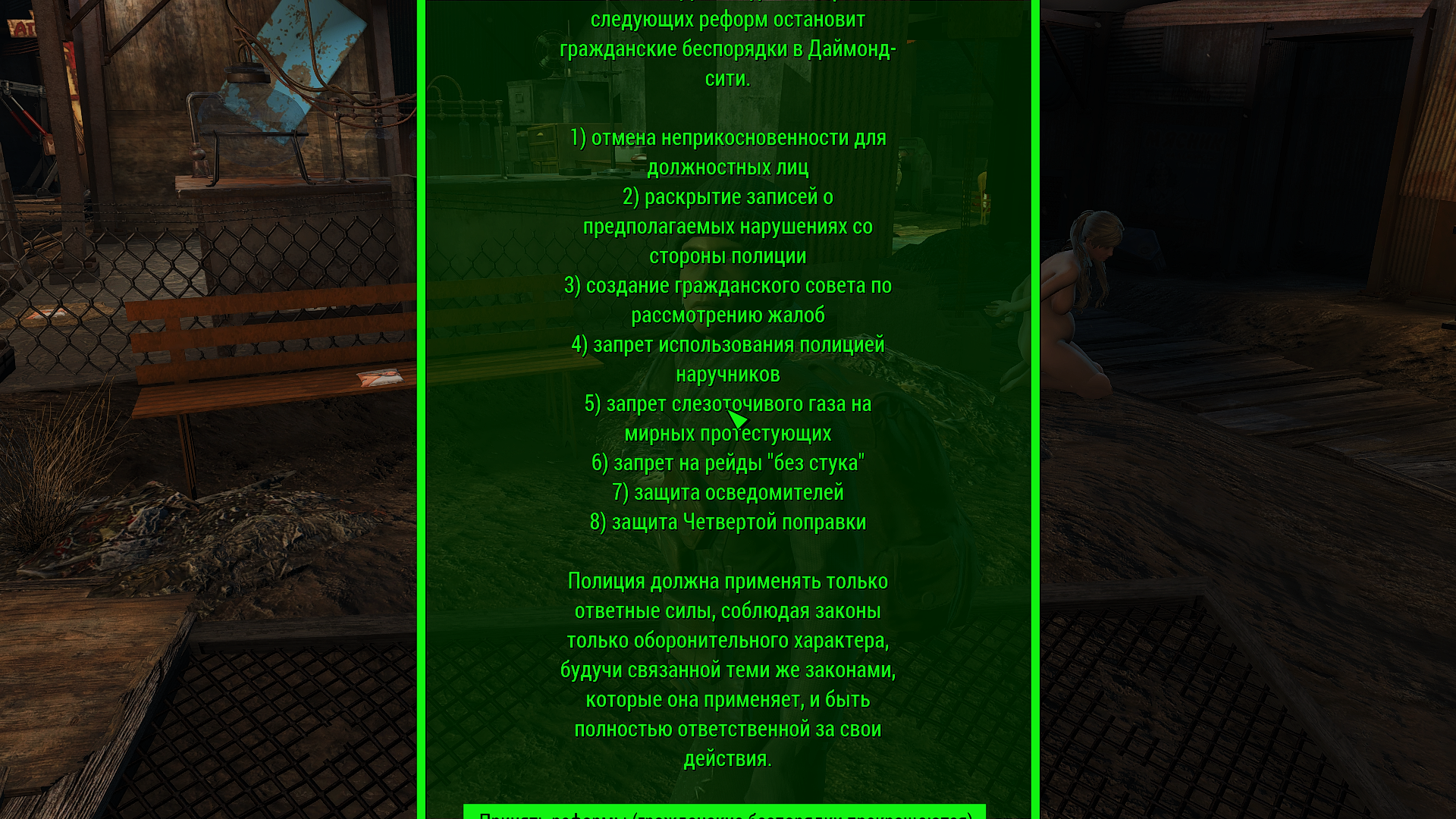 Требуемая версия игры: строго - Fallout 4 - 1.10.163.0 с 6 или 7 DLC. Другие версии несовместимы!