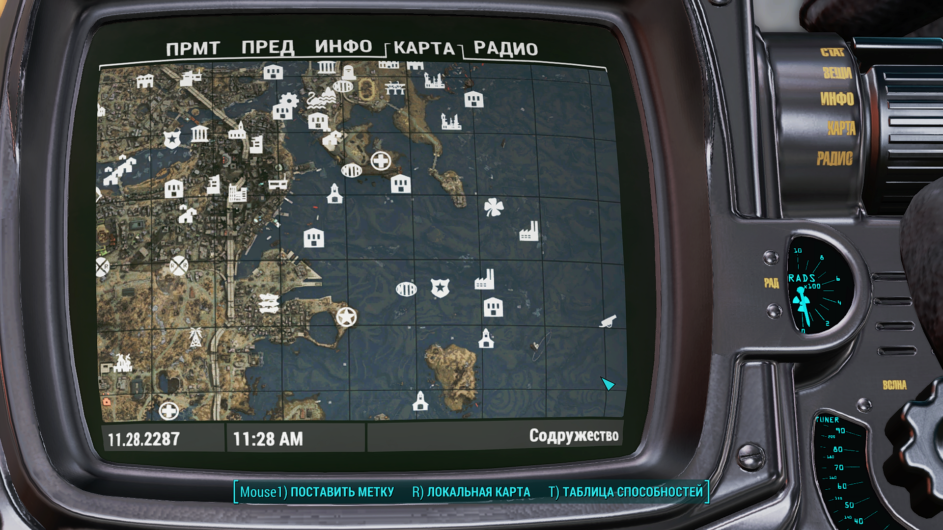 Маркеры на карте Пип-боя сползают в сторону.