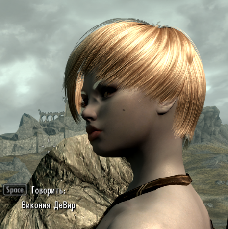 2. Викония - она, вообще говоря, довольно страшненькая. Посему при помощи NifMerge заменил ей лицо на лицо Эриниэль (https://gamer-mods.ru/load/skyrim_le/kompanony_i_rasy/eryniel_elf_reborn/68-1-0-1412). С причёской не связывался, это анимированный парик из DINT999.