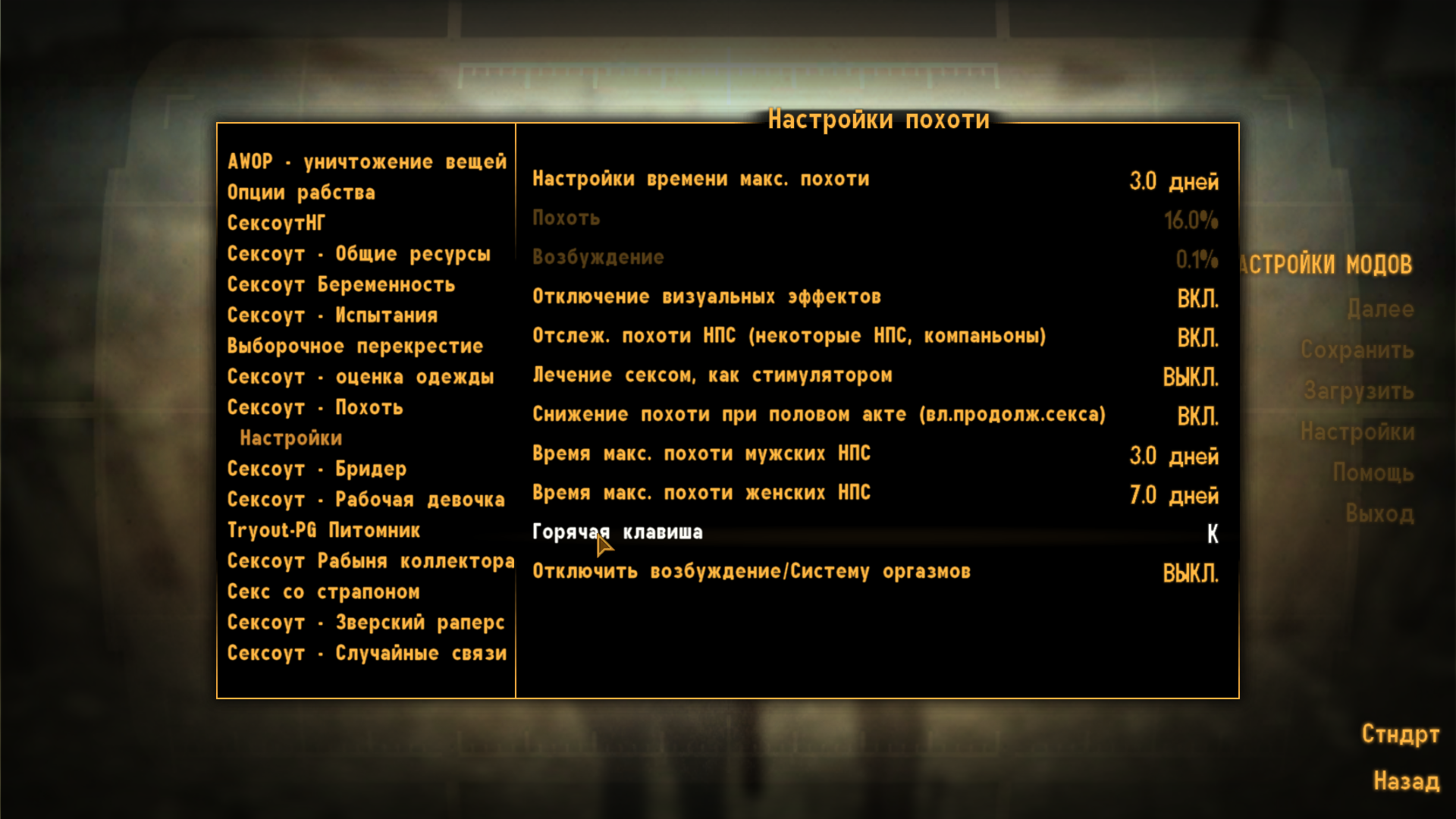 Отлаженная система SEXOUT - 5.01 глобальная сборка обычных и секс модов для Fallout New Vegas