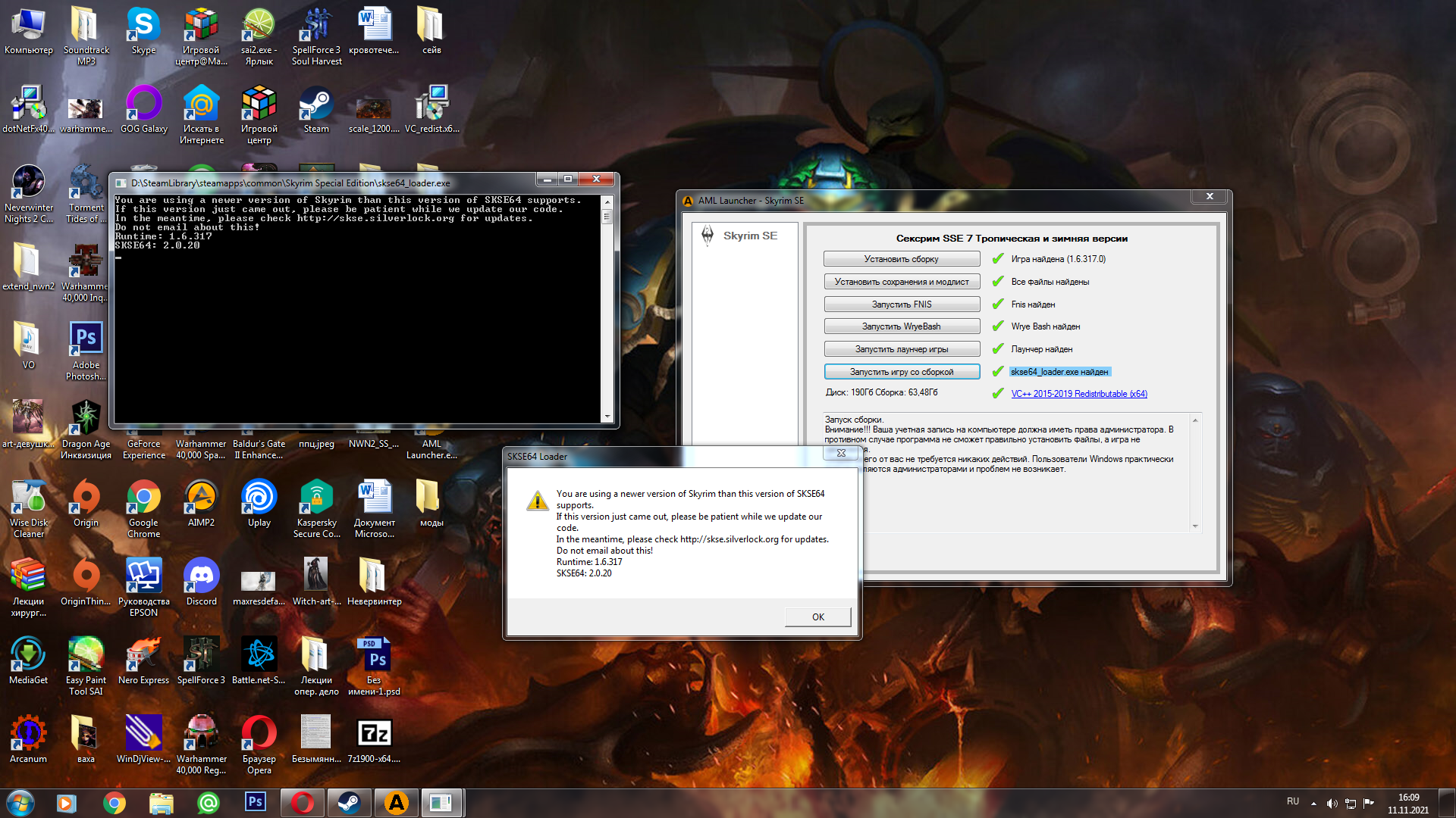 У вас должна быть установлена игра: The Elder Scrolls V: Skyrim Special Edition версии 1.5.97.0