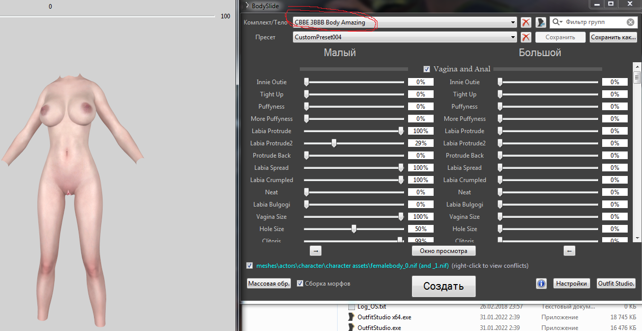 Бодислайд или аутфит все таки? у меня аутфит не хочет правильно работать...референс еррор пишет при подгрузке пресетов..походу нужно переустанавливать