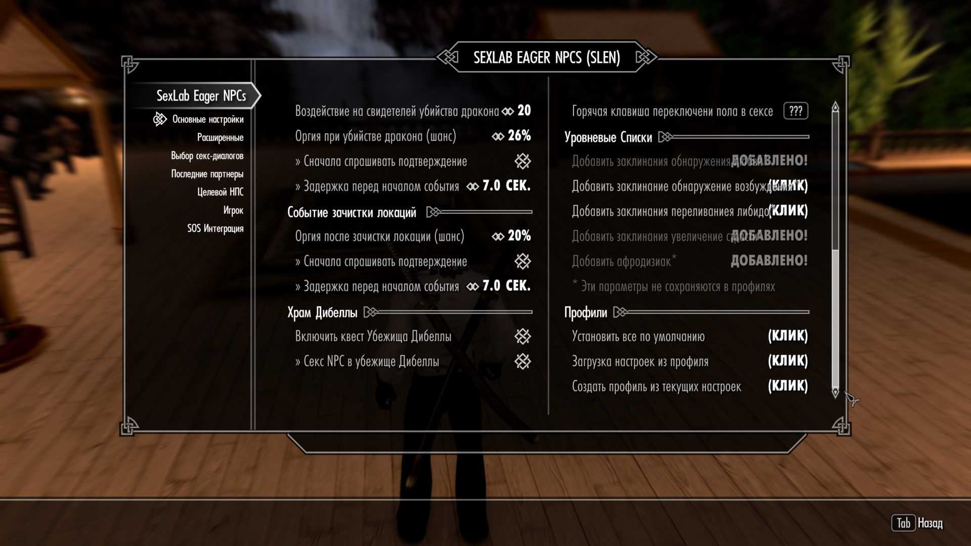 Если вам надоело приставание НПС с фразой "мне нравится твое тело, давай развлечемся" его можно отключить в настройках мода Naked Dungeons.