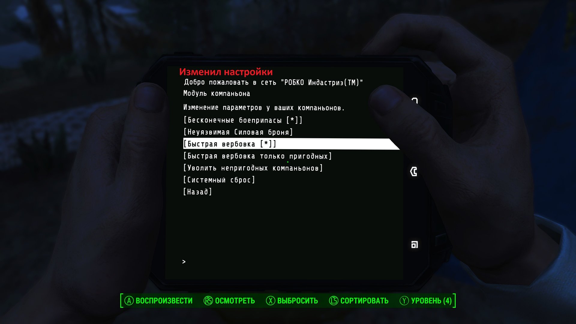Требуемая версия игры: строго - Fallout 4 - 1.10.163.0 с 6 или 7 DLC. Другие версии несовместимы!