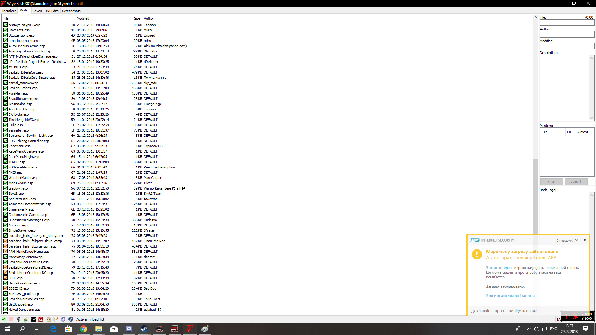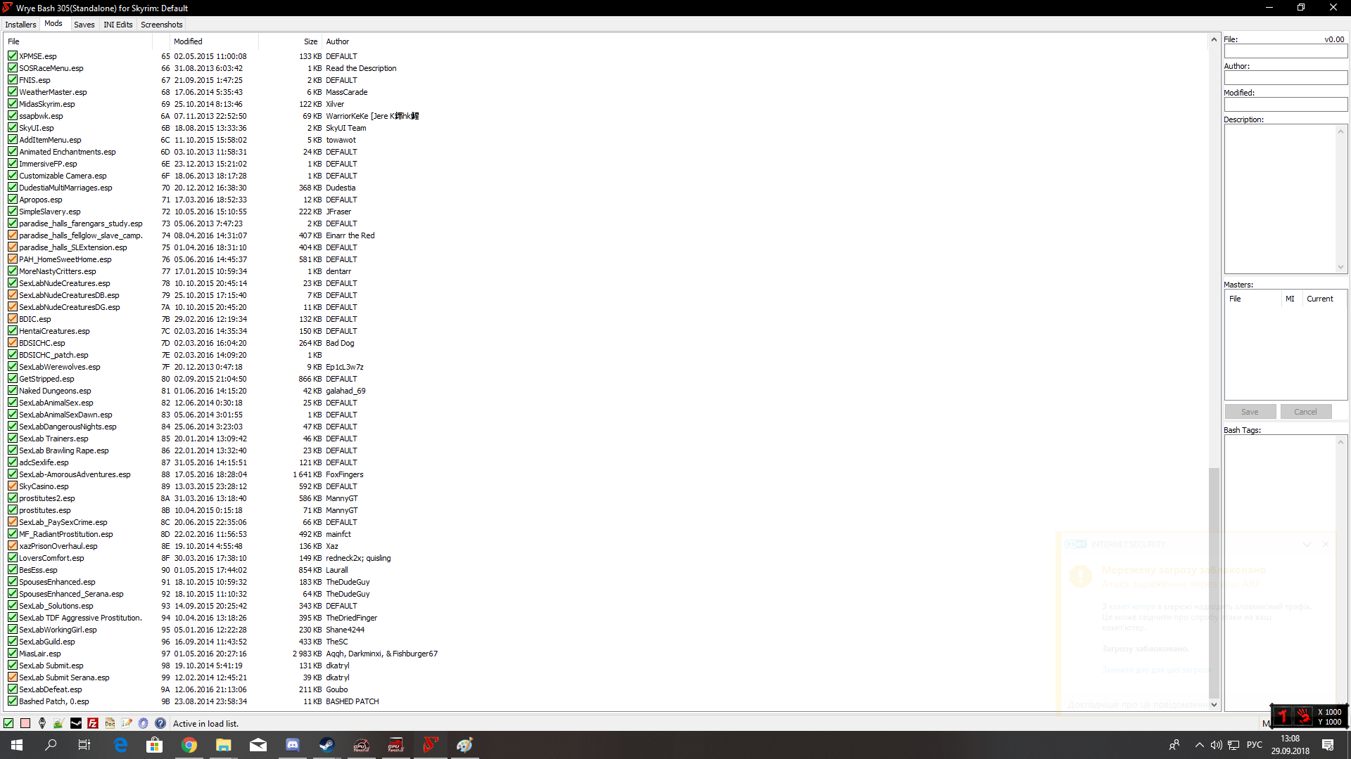 Нашел причину, отключение мода книга любви (TBOS.esp) исправляет проблему.