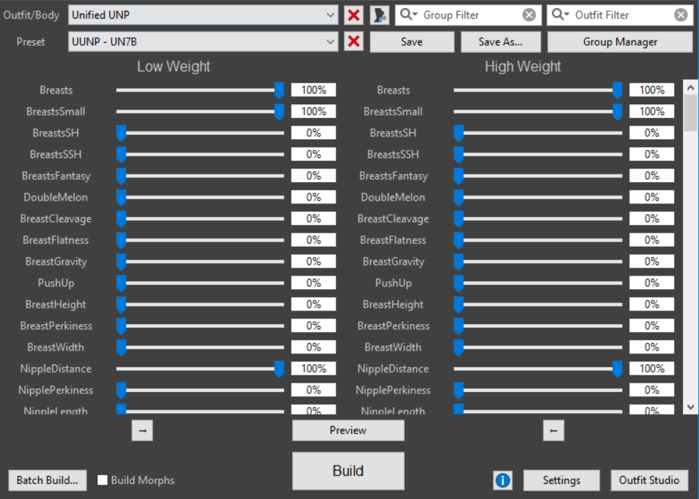 Приветствую Мастер! Дважды разбив морду о шкаф, сам допёр откуда ноги растут. Вот, только перед твоим появлением, нашёл твою тему по работе в бодислайде и пытаюсь штудировать. Однако в полосе "Outfit/Body", за неимением ничего другого выставил "Unified UNP Special" а в полосе "Preset" выставил "UUNP - UN7B". А он мне навстречу выставил красные кресты... Чё творится-то, ка дальше жить?