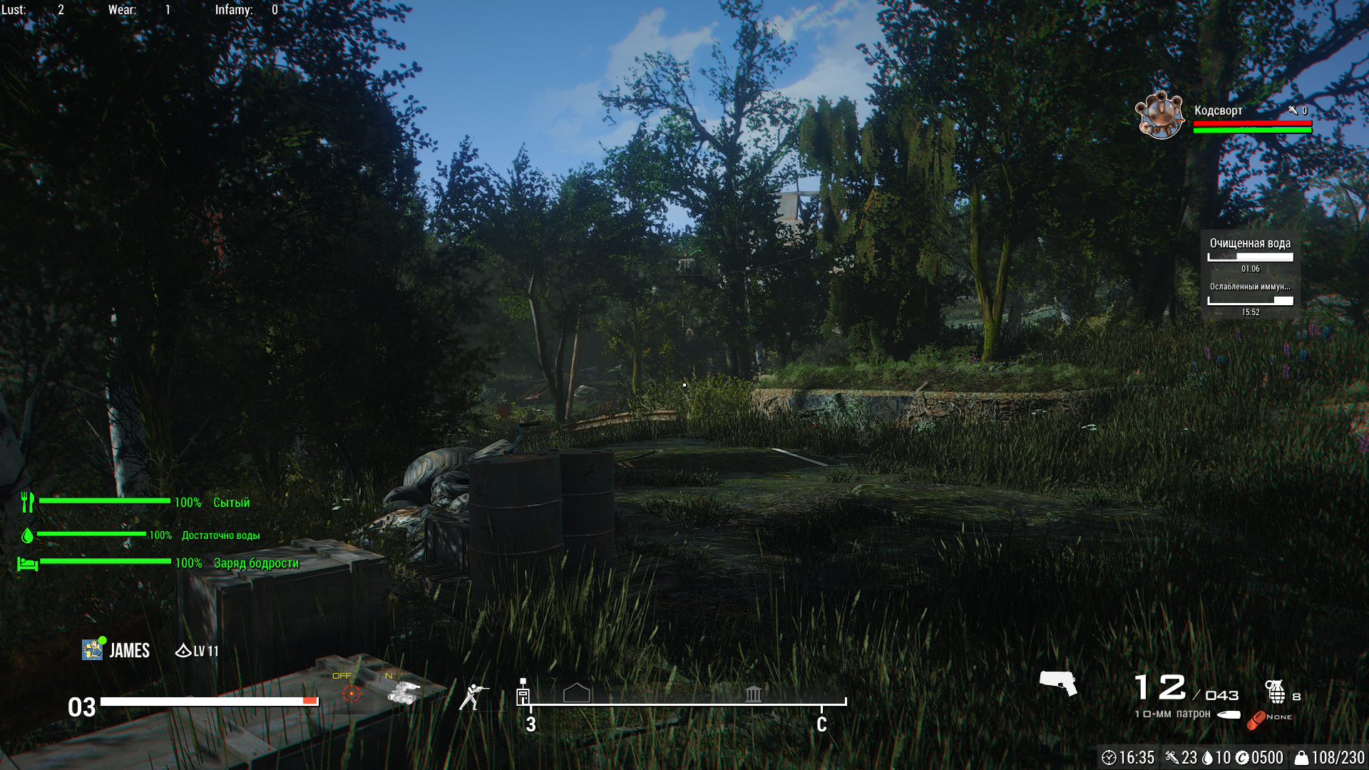 Ну красотень!... У меня не потянет видюшка такое Radeon R9 270X (2Гб 256шина GDDR5). Но это уже не пустошь, это... Чащоба какая то 🙂 Но очень красиво. Здорово...