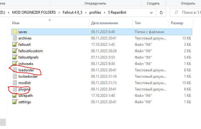 как видите , тут в одном месте собраны и папка с сохранениями, И все ини-файлы и порядок загрузки (plagins.txt),