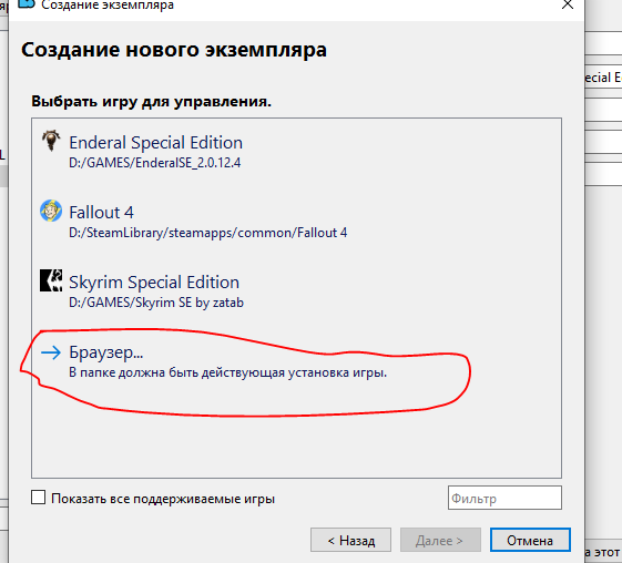 Указываем папку с игрой