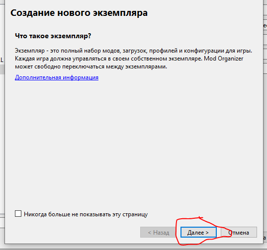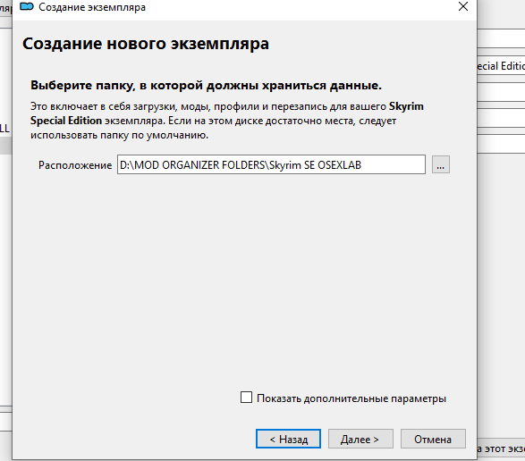 Далее доходим до  окна выбора, где будут храниться файлы нового экземпляра,