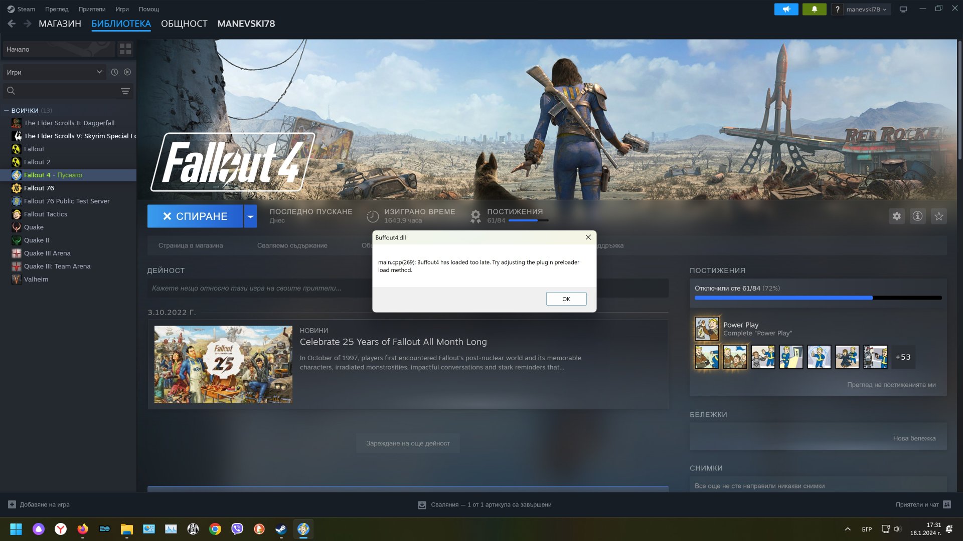 Буфаут вьдал ошибка и игра отказала грузится. Я просто скопировал с адрес либрари в дату.