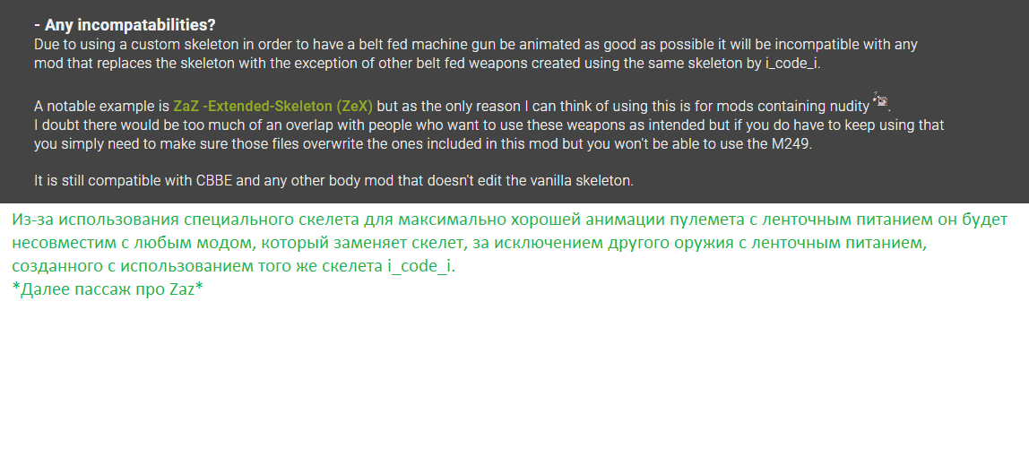 Про M249 автор оказывается в описание мода говорил в части про Несовместимости.
