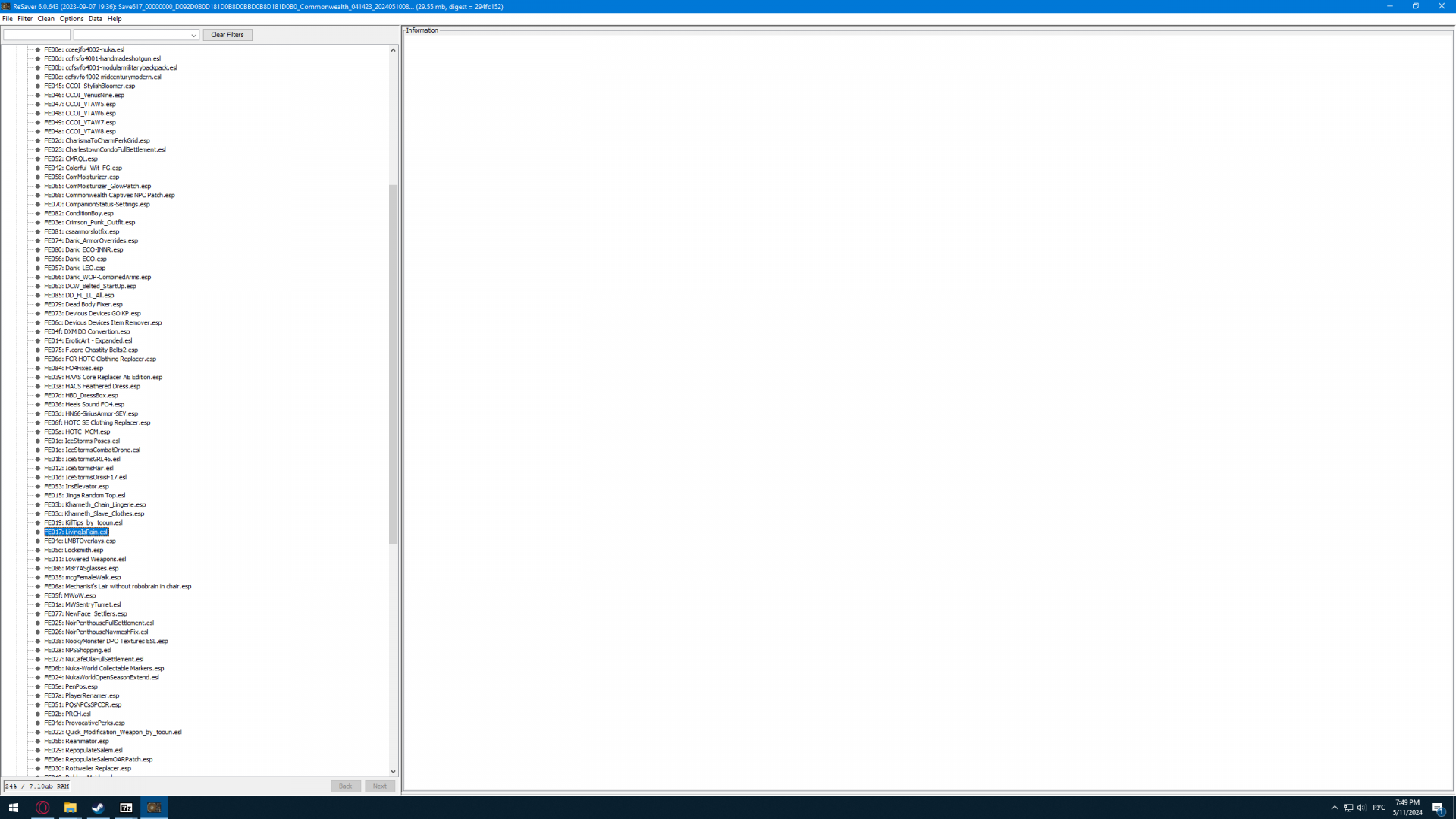 PS: сбрось нафиг Provocative Perks. Удаляй LivingIsPain, он у тебя в сейве стоит почему то до сих пор, хотя мы уже выяснили что он какает в сейвы.