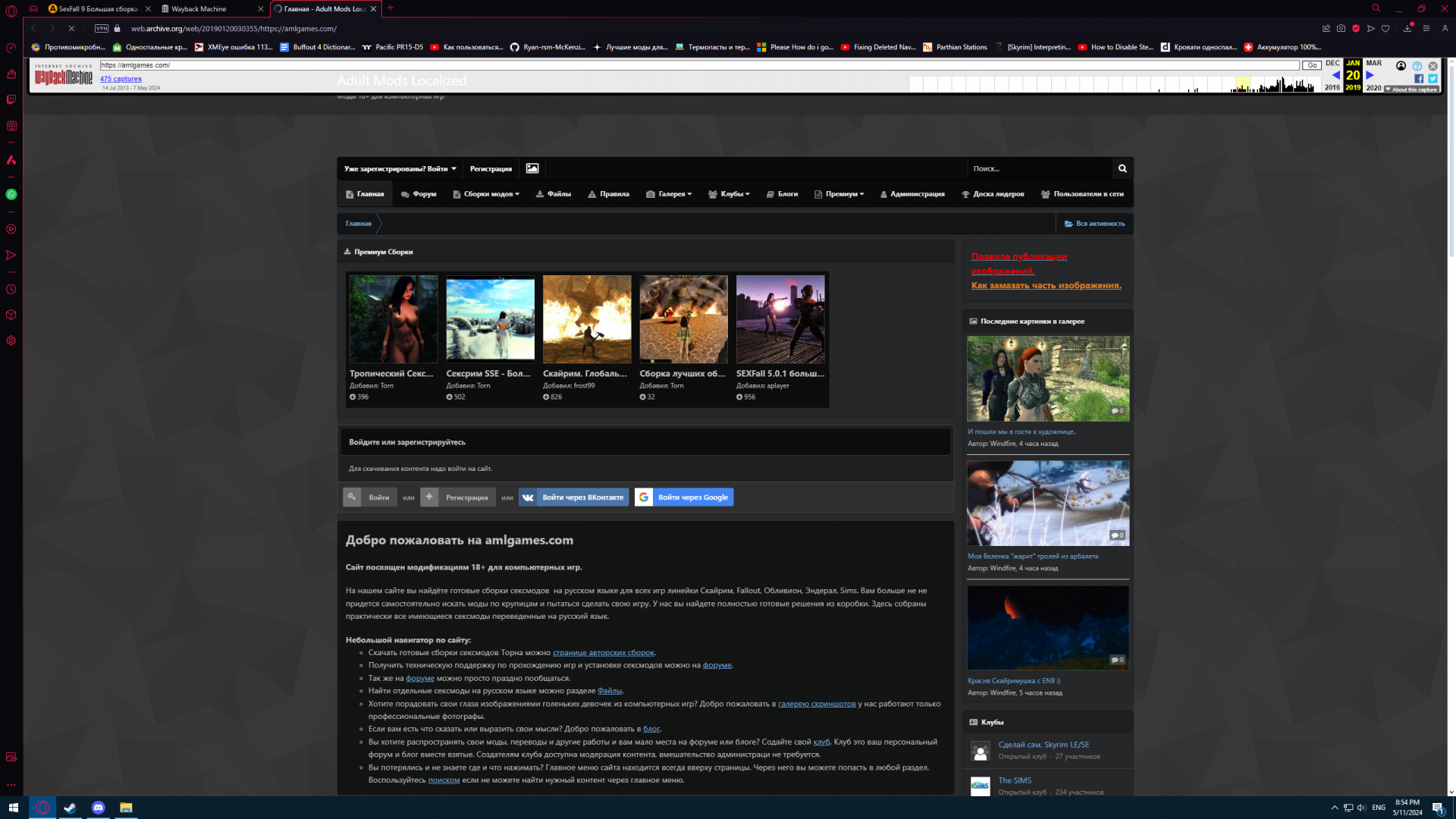 @verflught Я чего то не помню что на старом сайте было. С другой стороны я и не учувствовал в жизни сайта никак, просто качал сборки Скайрима и время от времени спрашивал если что то непонятно было. Плохо что теперь даже не посмотреть как все было. В интернет архиве все копии страницы до 18года потеряны, хотя еще в феврале я проверял, там все на месте было. Там был снапшот страницы за 13й год, с постом админа Armis на главной странице.