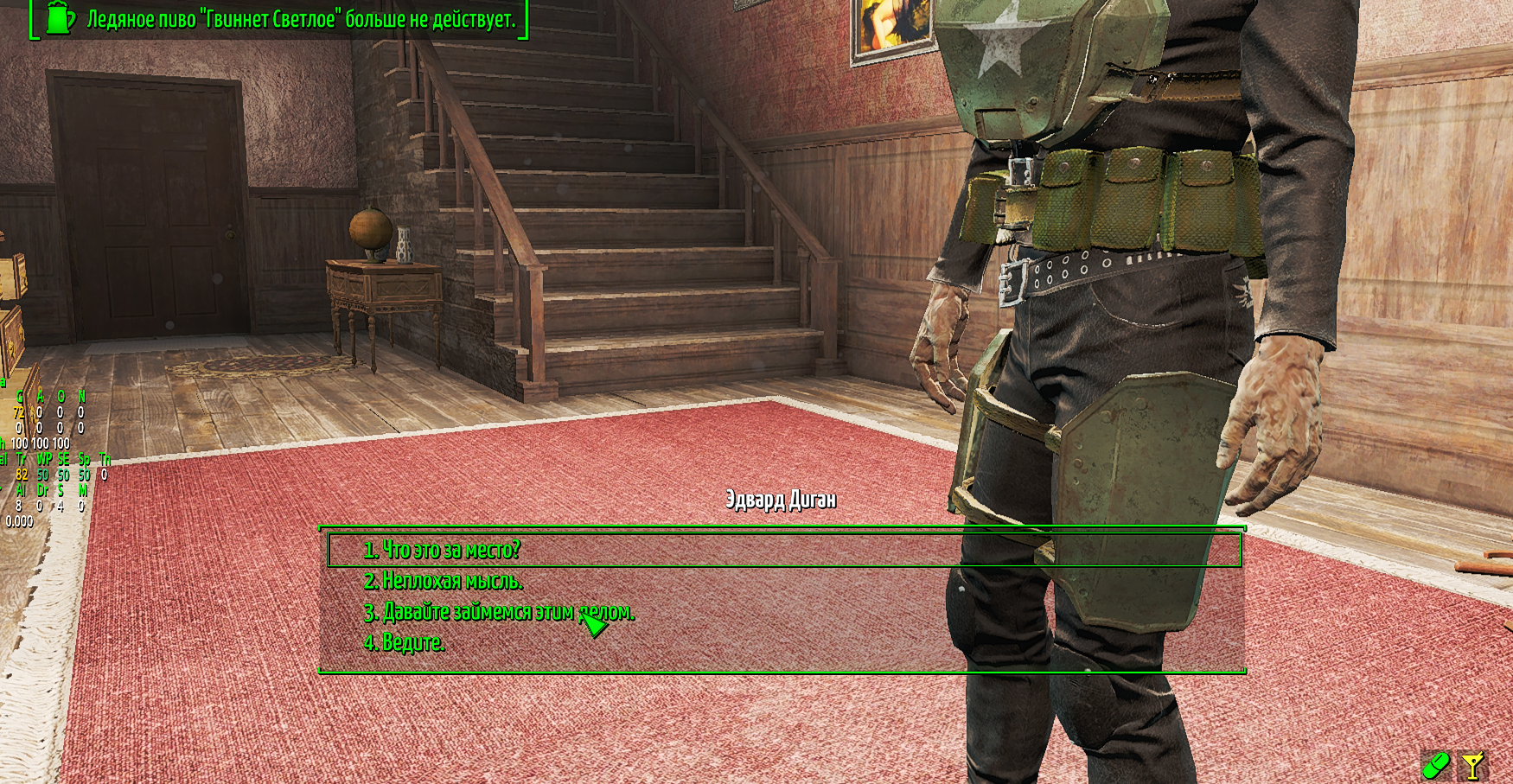 🟢Если у вас пропал пипбой и не отображается при открытии или вместо него голая рука, нажмите клавишу Ё и введите команду: