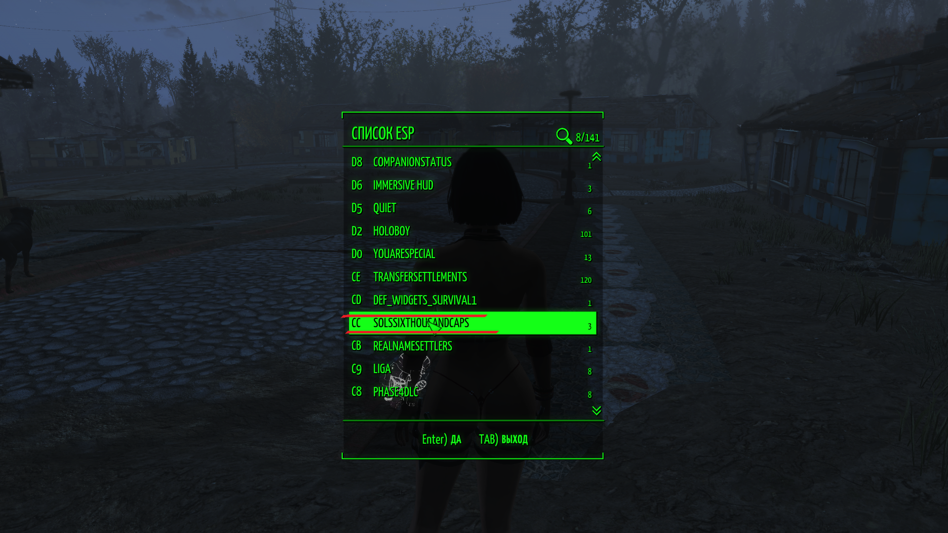 Когда выберешь ту что про групповуху, подойди к любому другому НПС и снова нажми 5. Там прямо подсказка будет от самого мода.                                                                                                                         Попробывал, все работает,  спасибо. И еще вопрос, а какая нибудь обувь / туфли,  и т, д. \ в этом моде есть?