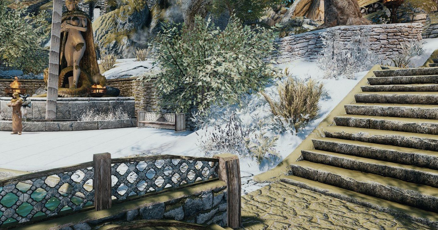Это рядом с Морозной рекой. Но на самом деле такое по всему Скайриму. Все дороги, все крыши домов. Все камни, скалы.