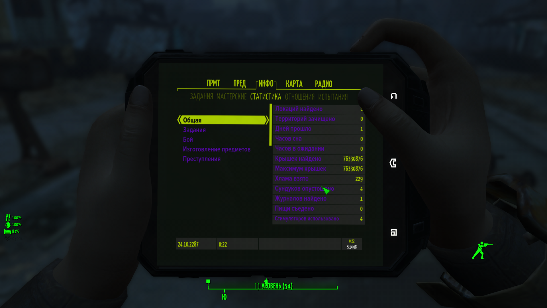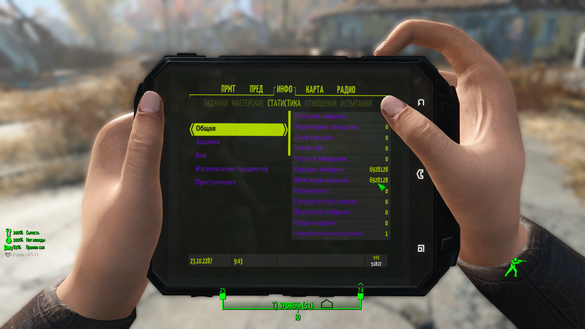 @TheXimik! А ты вызванные крышки не клал куда нибудь в контейнеры? И не брал их оттуда потом? Потому что в FO4Fixes вшит мод Stash Those Caps, вот он удваивает значение найденных крышек если крышки снова взять в инвентарь. Ну то есть ты положил в контейнер 100 крышек которые заспаунил через Чит Терминал, в пипбое значение найденных крышек 100. Засунул их в контейнер и снова взял в инвентарь, и тогда значение найденных крышек уже 200.