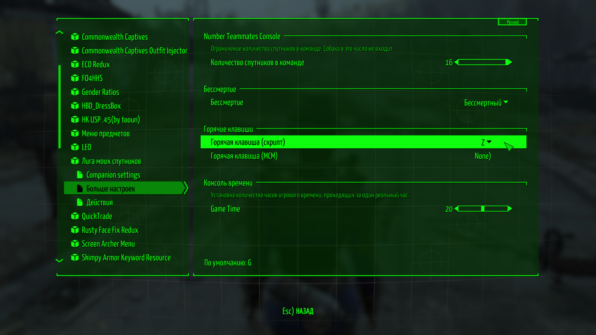@oleg66 В MCM меню Liga of my Companions настрой. По умолчанию стоит Z, но на ней же стоит функция ножа для освежевания добычи из Hunter of Commonwealth.
