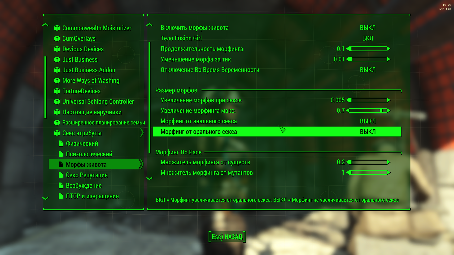 ВНИМАНИЕ!!! Сборка несовместима с модами Nuka Ride и Commonwealth Slavers. Если хотите поиграть в эти моды, используйте сборку Sexfall XXX.