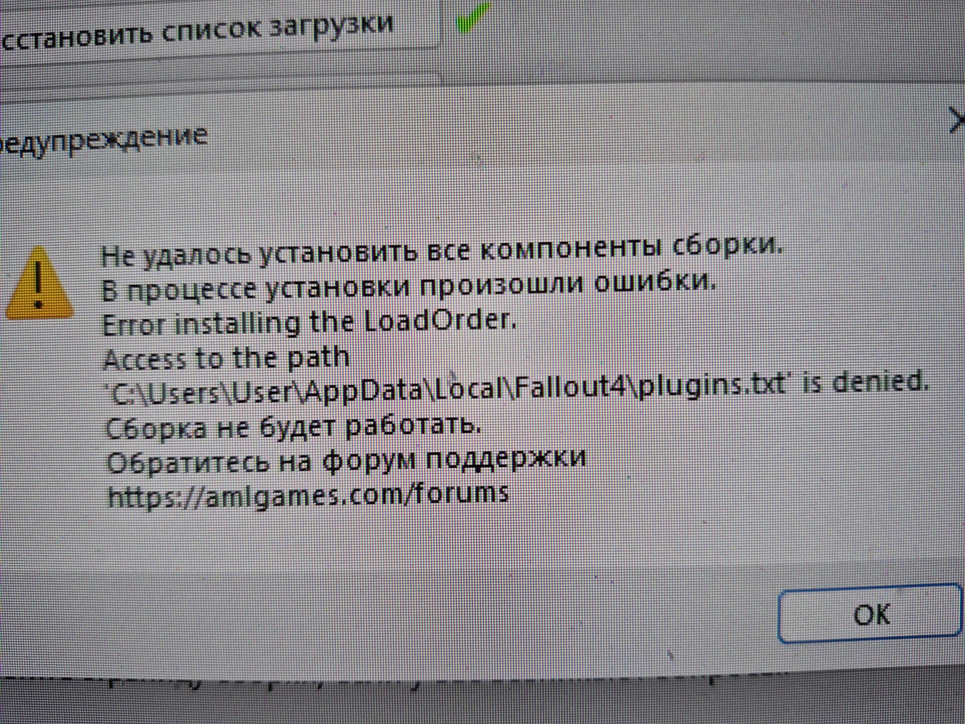 Ошибка при установке сборки