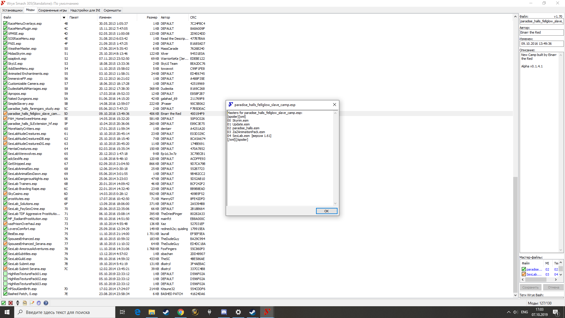 Сборка очень глюкавая, в города вообще не возможно попасть, кое как заходил по ночам в Солитьюд, днем зайти не возможно вылетает стабильно. Сейчас дошел до коллегии бардов сожжение чучела и все ничего не помогает играет вылетает на все 100%. Кто то знает что может вызывать вылеты, чаще всего в городах, заходить получается только по ночам. Между городами в пещеры или какие то руины все норм работает но города стали просто не доступны.