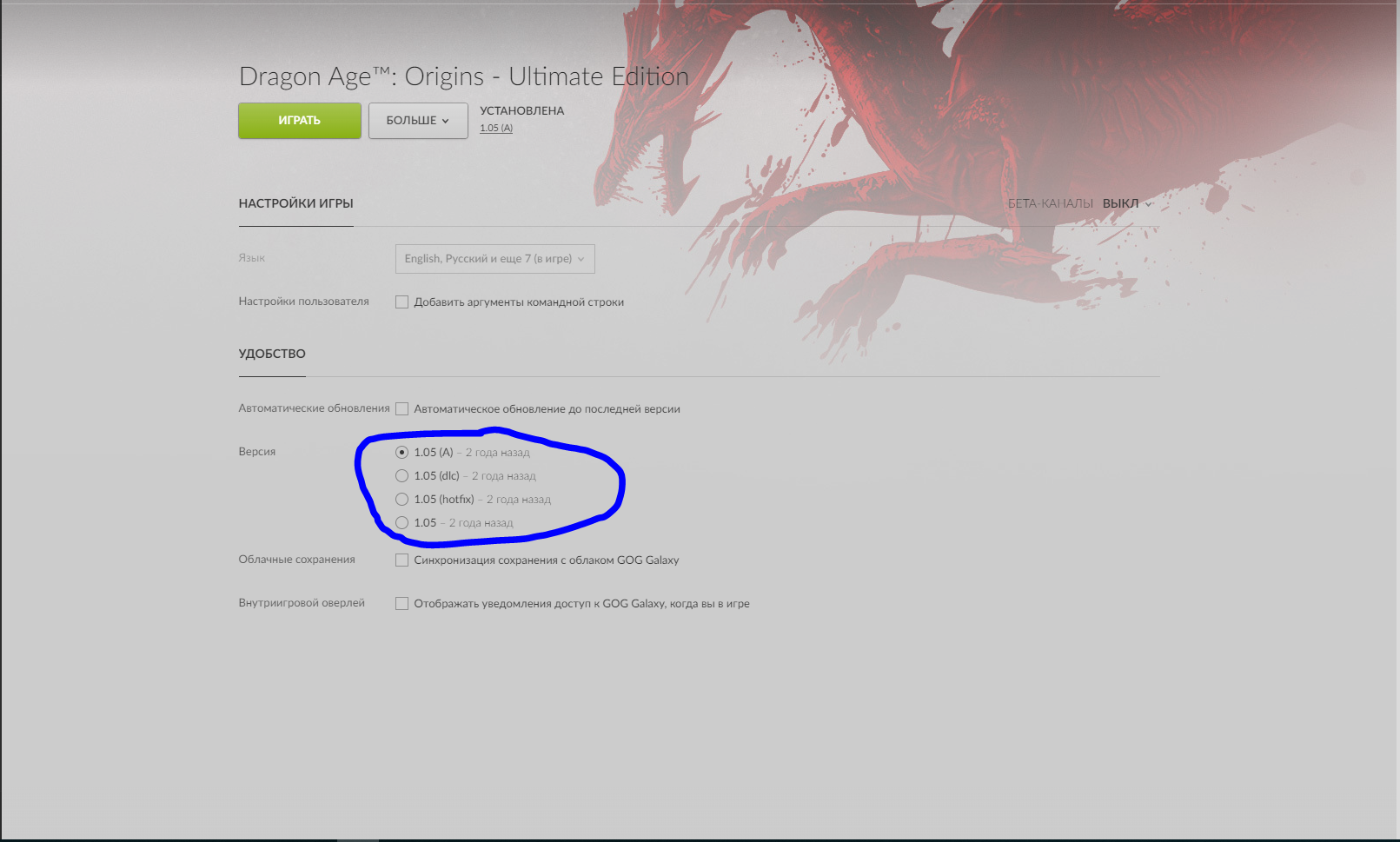 Может еще попробовать откатить саму версию игры в GOG до более низкой., но беспокоюсь что файлы сохранения не будут работать после отката.
