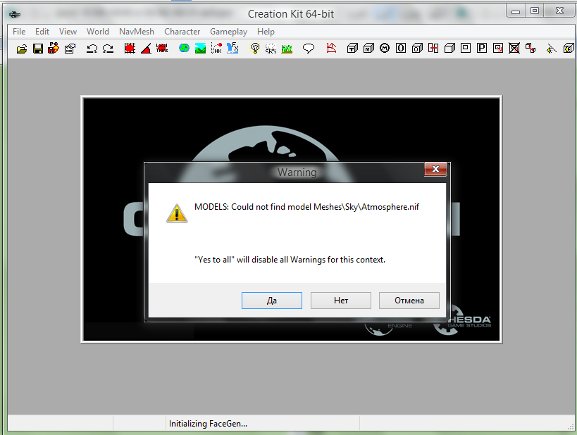 3. запуск программы через ярлык creationkit.exe