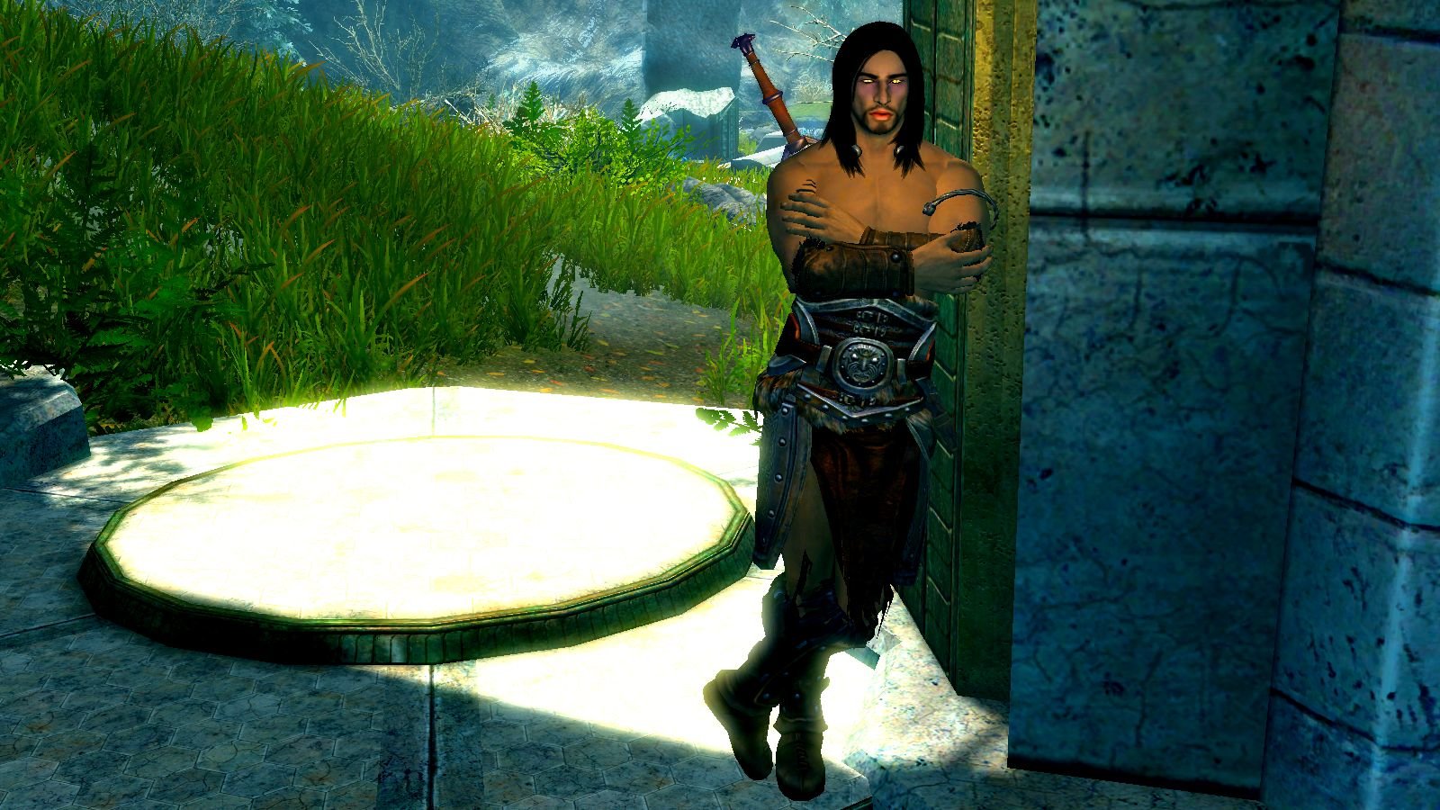 Эйран подпирает колонну..