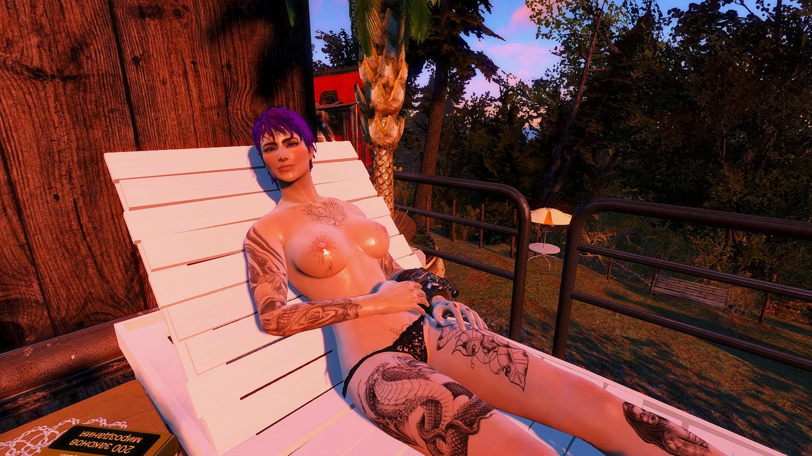 Отдыхает Ева от миссий Братства Золота. ;)