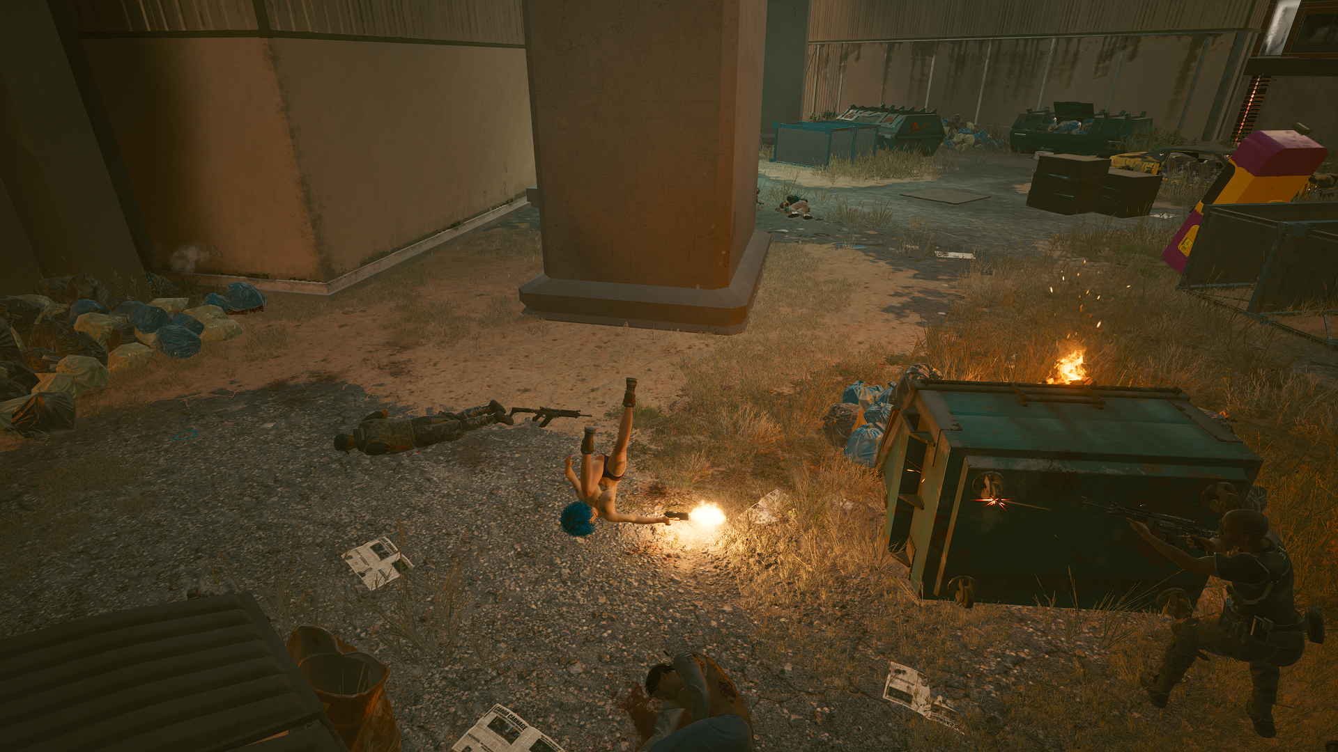 Кувырок-переворот и из трофейного пистолета.