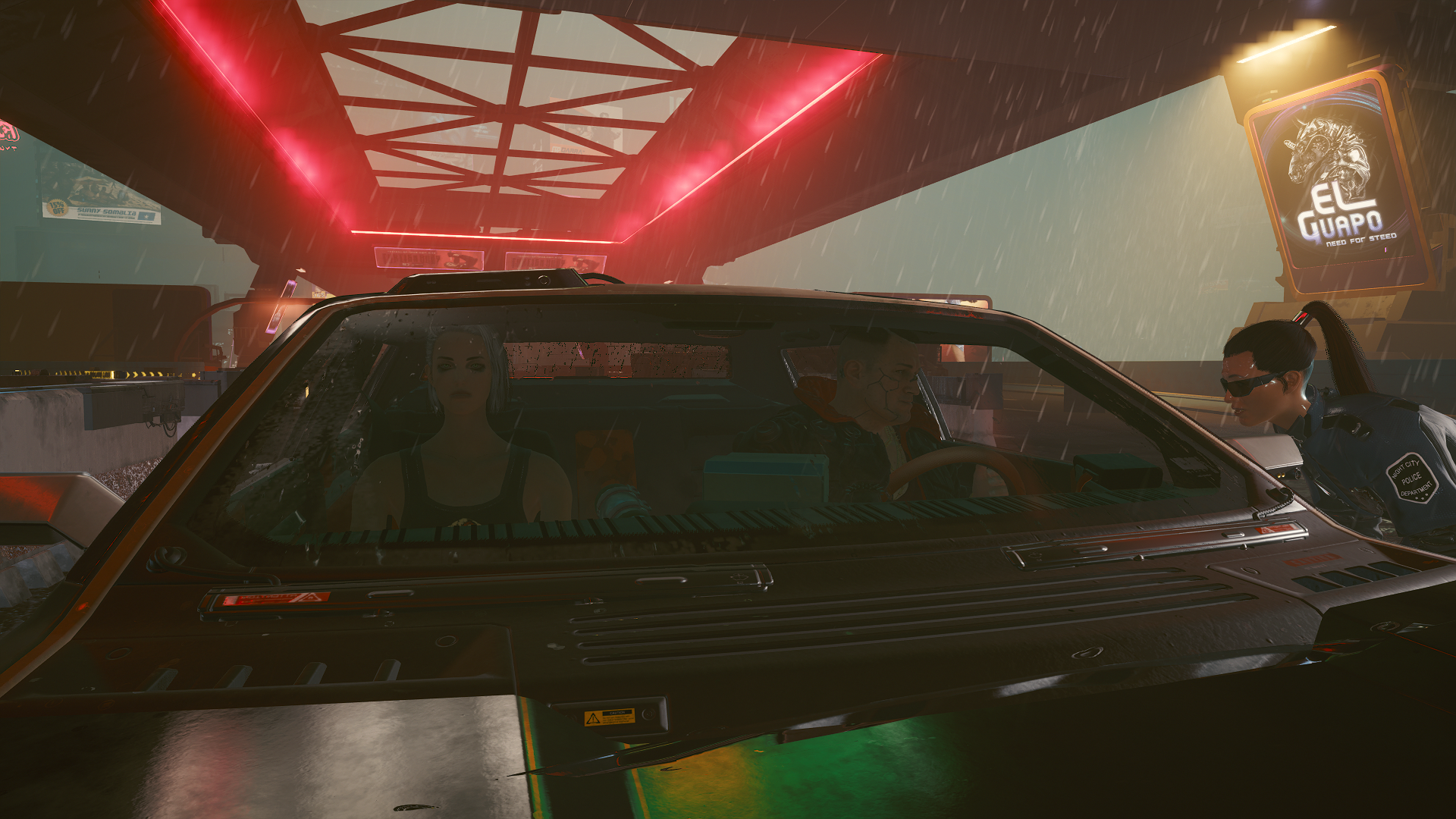 Джеки уговаривает офицера пропустить их через оцепление.