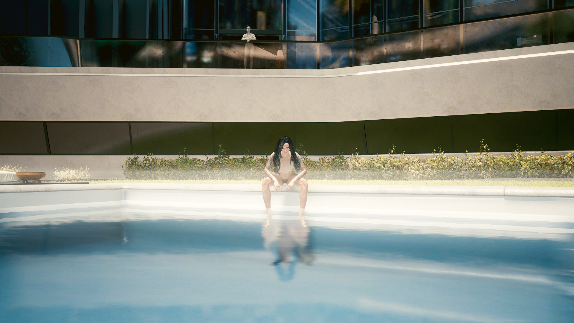 Йеннифэр у бассейна и Джуди на террасе -1.