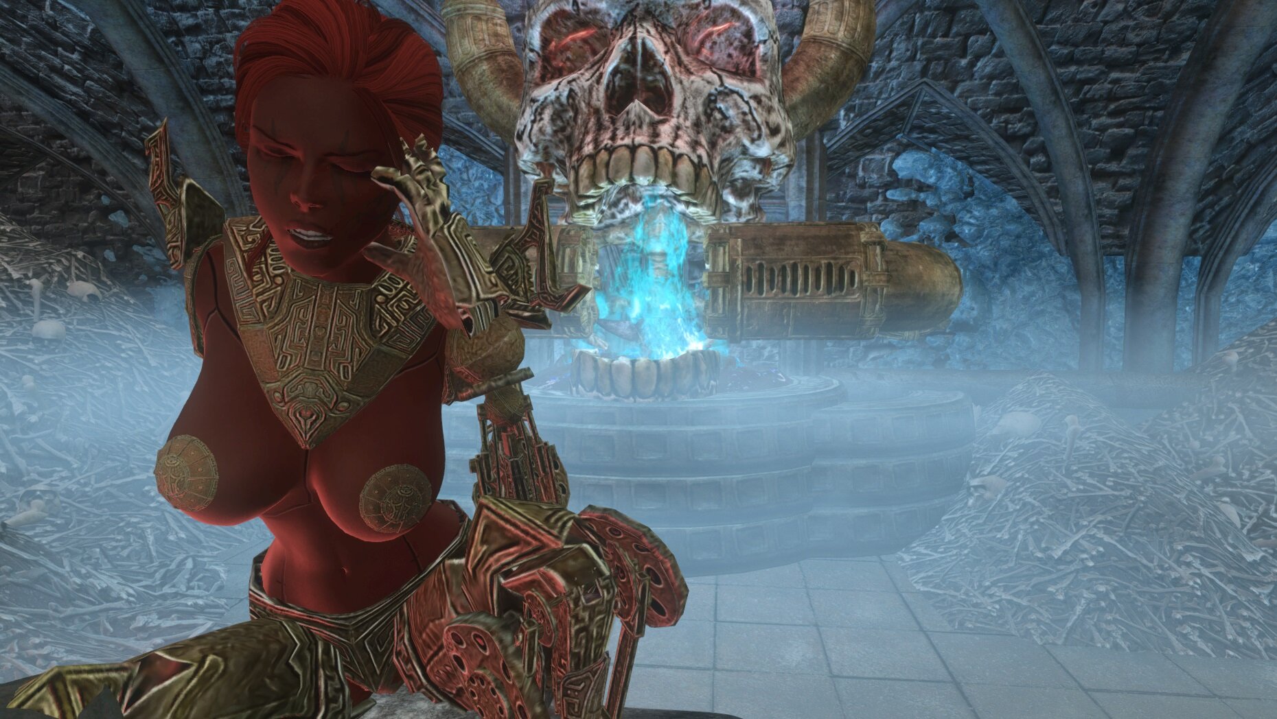 В кузне в тело восставшей, которая при воскрешении обратилась суккубом, были внедрены технологии с частичным восстановлением
