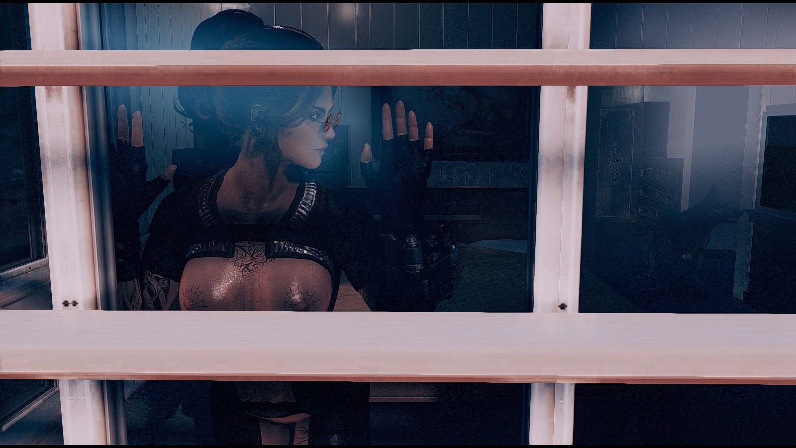 Информация о фото Вамп за стеклом - смотрит на пса.. Fallout-4 (Сборка 7.5)