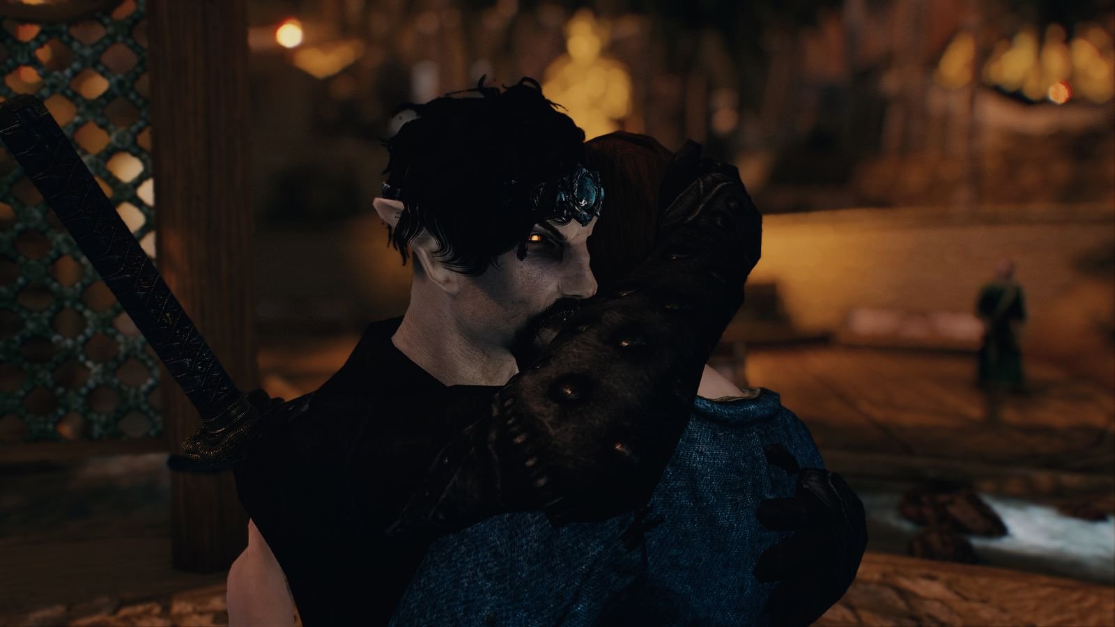 Информация о фото Даркфэл обнимающий женщину.. Skyrim SE (Тропики 7.0)